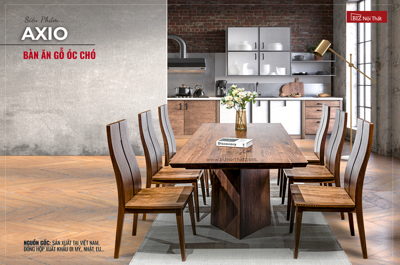 Bàn ăn gỗ óc chó xuất khẩu Mỹ AXIO là một trong những mẫu bàn ăn đơn giản nhưng không kém phần tinh tế sẽ giúp phòng ăn của bạn không chỉ ấm cúng hơn mà còn là điểm nhấn cho ngôi nhà đẹp và cá tính theo phong cách của chủ căn nhà. Màu sắc bàn ăn dễ dàng phù hợp, đồng điệu với nhiều phong cách nội thất khác nhau.