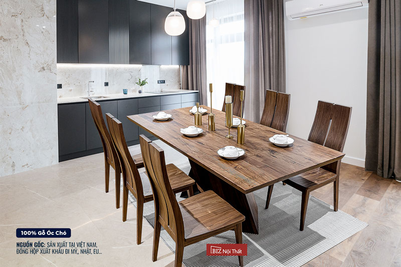 Bàn ăn gỗ óc chó xuất khẩu Mỹ AXIO là một trong những mẫu bàn ăn đơn giản nhưng không kém phần tinh tế sẽ giúp phòng ăn của bạn không chỉ ấm cúng hơn mà còn là điểm nhấn cho ngôi nhà đẹp và cá tính theo phong cách của chủ căn nhà. Màu sắc bàn ăn dễ dàng phù hợp, đồng điệu với nhiều phong cách nội thất khác nhau.