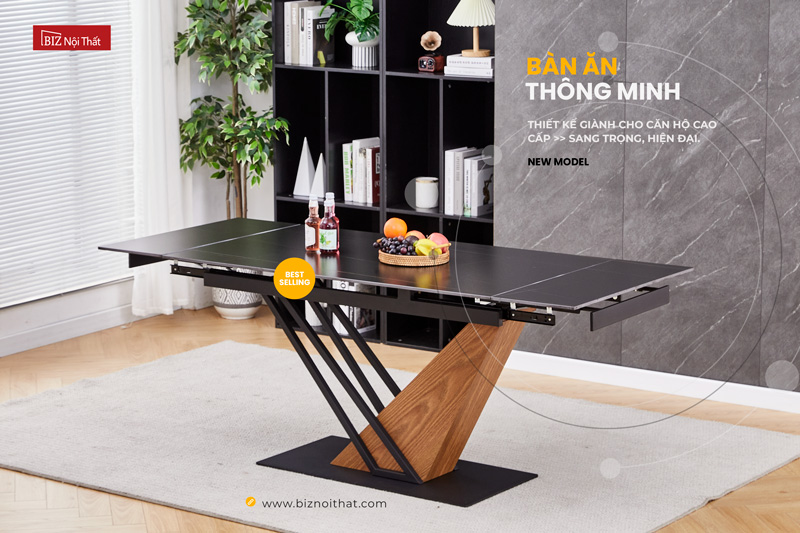 Bàn ăn thông minh kéo dài 2 đầu mặt đá Ceramic Biz-2348 >> THIẾT KẾ CHẮC CHẮN - SANG TRỌNG - MƯỢT MÀ <<