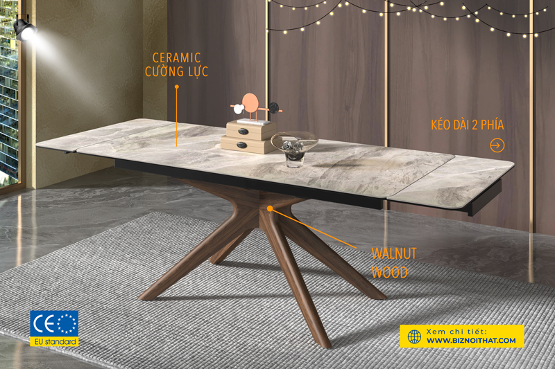 Bàn ăn thông minh kéo dài mặt đá Ceramic-9049 >> THIẾT KẾ CHẮC CHẮN - SANG TRỌNG - MƯỢT MÀ <<