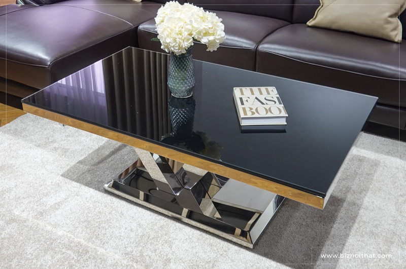 Bàn Trà mặt kính chân inoxCT-1917 - Sản phẩm thiết kế hình chữ nhật đầy phong cách mang tính thẩm mỹ cao, màu sắc trang nhã
