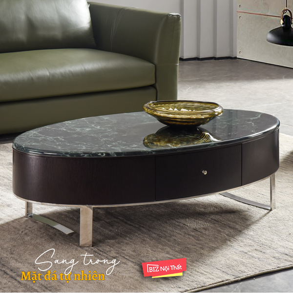 Bàn Trà Mặt Đá tự nhiên Mable C25021A màu xanh ngọc cao cấp nhập khẩu được thiết kế hình bầu dục đầy phong cách mang tính thẩm mỹ cao, màu sắc trang nhã, kiểu dáng đơn giản hiện đại. Đây sẽ là điểm nhấn nổi bật cho phòng khách nhà bạn.