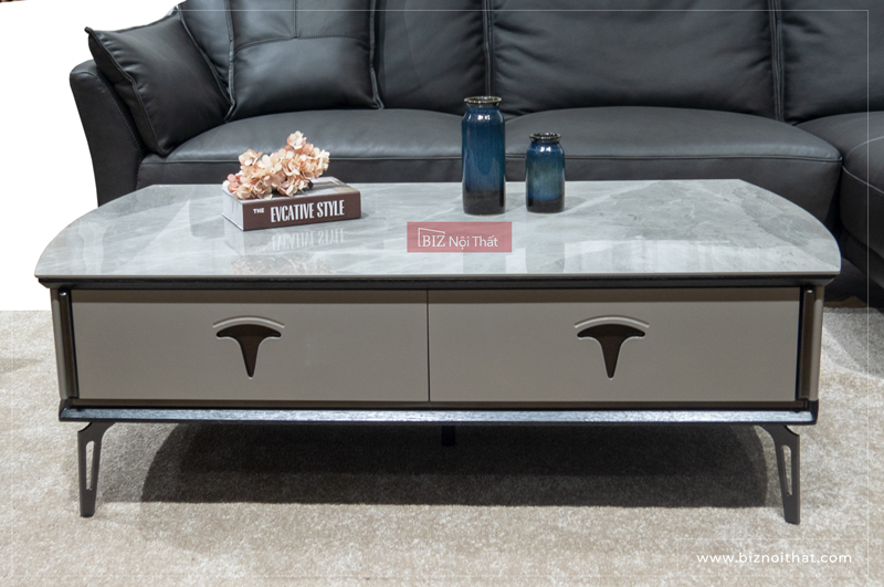 Bàn Trà Phòng Khách Mặt Đá Ceramic-8351 << SANG TRỌNG - HIỆN ĐẠI - CÁ TÍNH >> được thiết kế có 4 ngăn kéo chiều đều 2 bên rất tiện lợi khi dùng.