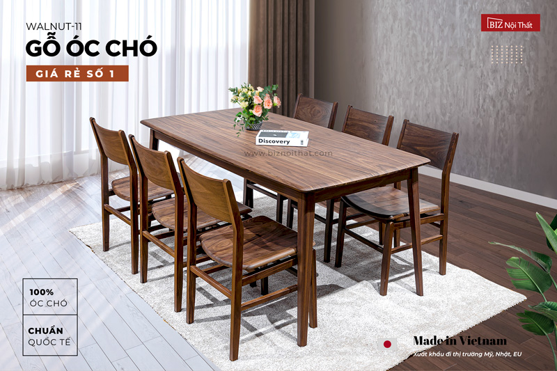 Bộ bàn ăn óc chó xuất Nhật biznoithat Walnut-011 là một trong những mẫu bàn ăn đơn giản nhưng không kém phần tinh tế sẽ giúp phòng ăn của bạn không chỉ ấm cúng hơn mà còn là điểm nhấn cho ngôi nhà đẹp và cá tính theo phong cách của chủ căn nhà. Màu sắc bàn ăn dễ dàng phù hợp, đồng điệu với nhiều phong cách nội thất khác nhau.