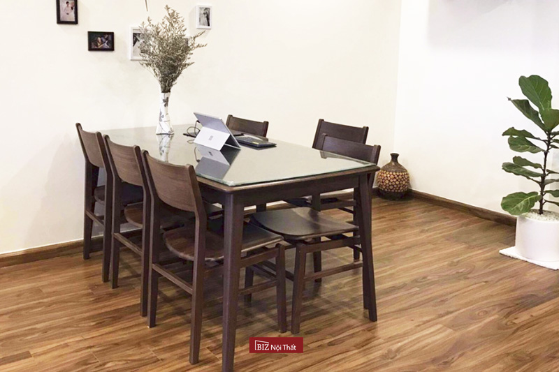 Bàn Ăn dài 1,65m kết hợp với 06 ghế óc chó OC01a mặt Gỗ Óc Chó