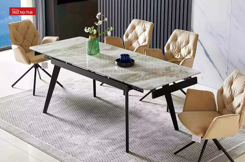 Bàn ăn thông minh mặt đá Ceramic là một những sản phẩm thuộc dòng sản phẩm nội thất kim loại cung cấp bởi Biz Nội Thất. Sản phẩm mang tính thẩm mỹ cao sẽ giúp phòng khách của bạn không chỉ ấm cúng hơn mà còn là điểm nhấn đẳng cấp cho ngôi nhà đẹp và cá tính theo phong cách của chủ căn nhà. Màu sắc bàn ăn dễ dàng phù hợp, đồng điệu với nhiều phong cách nội thất khác nhau.