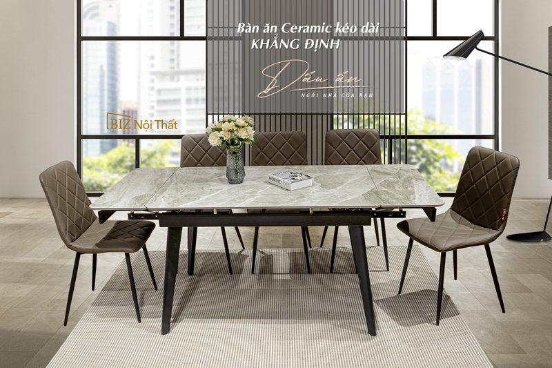 Bàn ăn thông minh mặt đá Ceramic được coi là một lựa chọn hoàn hảo cho không gian nội thất phòng ăn, với thiết kế hiện đại dễ dàng vệ sinh khi sử dụng, giúp cho căn phòng trở nên tiện nghi và sang trọng hơn. Đây không chỉ là nơi để tiếp khách mà còn là nơi để các thành viên trong gia đình cùng ăn uống với nhau, tận hưởng những giây phút nghỉ ngơi, thư giãn sau một ngày học tập và làm việc mệt mỏi. Để có được một không gian hài hòa vừa sang trọng vừa đem đến sự ấm cúng, thoải mái dễ chịu thì gia chủ cũng cần hết sức khéo léo trong việc chọn và kết hợp những món đồ nội thất trong phòng ăn nhà bạn.