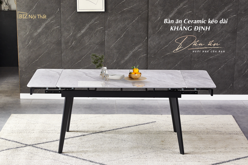 Bàn ăn thông minh mặt đá Ceramic Biz-2312 khi thu gọn chỉ dài 1,37m & dài 1,67m khi mởi rộng 1 phía hoặc dài 1,8m khi mở rộng cả 2 phía