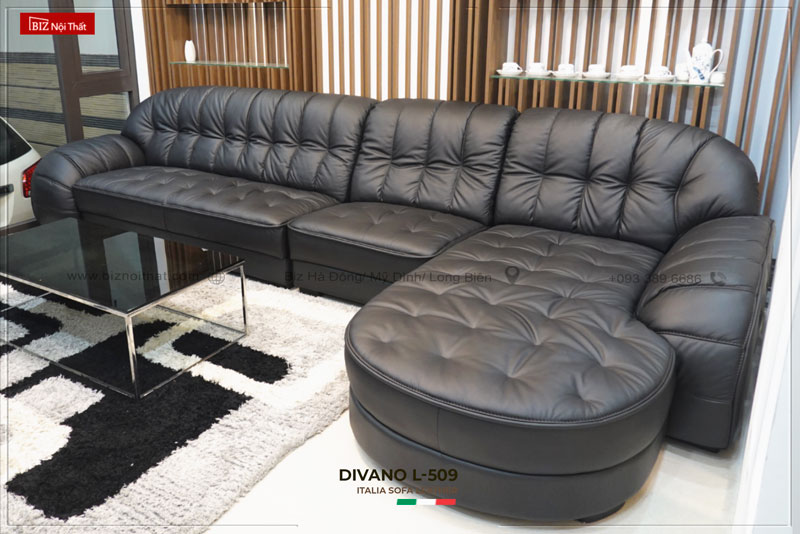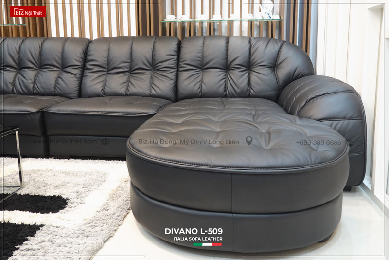 Bộ Sofa chất liệu da bò Ý Divano L-509 sử dụng chất liệu da bò thương hiệu GM đến từ Italia với chất lượng & độ bền cực cao. Bền Đẹp mãi theo thời gian. Da bò thật cực dày có tính năng ít thấm nước nên có chất lượng cao.