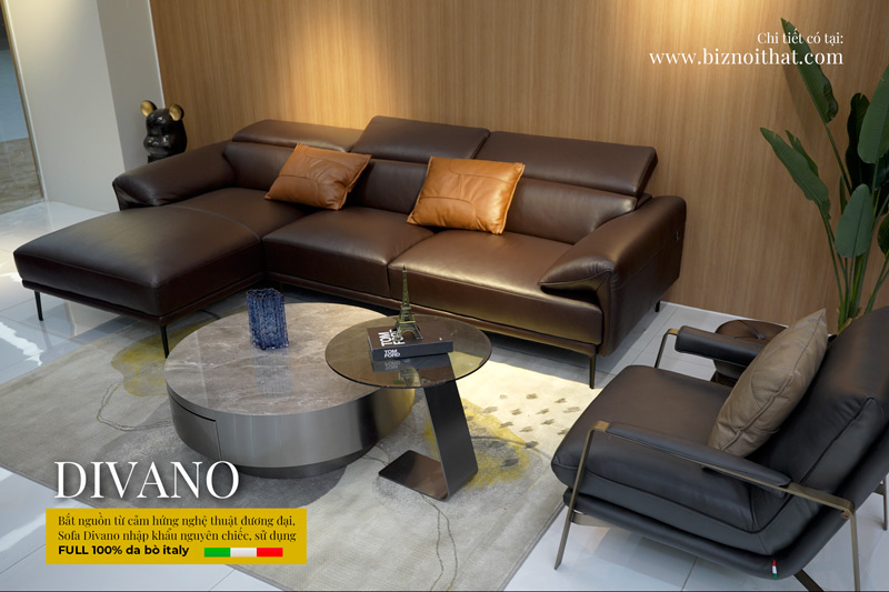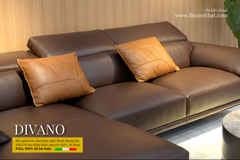 Nguồn gốc: DIVANO, sử dụng da thật từ hàng GM Italia - thương hiệu sản xuất Sofa phong cách hàng đầu Italia, được thiết kế, nhập khẩu chính hãng và phân phối độc quyền bởi BIZ NỘI THẤT