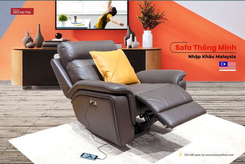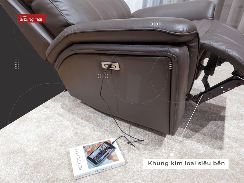 Ghế đơn Sofa được tích hợp USB sạc điện thoại hoặc máy nghe nhạc đem lại sự tiện nghi nhất cho căn hộ thông minh nhà bạn.