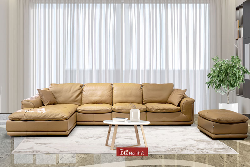 Sofa da thật L-475 kết hợp với Ghế đôn Sofa taọ nên 1 Phòng Khách Hiện Đại Sang Trọng Đẳng Cấp