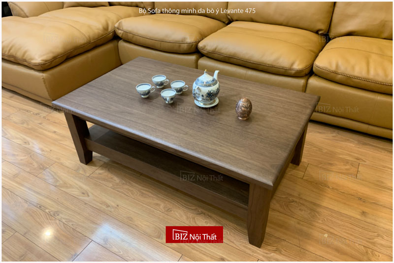 Bộ Sofa thông minh da bò ý Levante 475 được kê kết hợp với bàn trà Gỗ óc chó BT-OC02 đem lại cảm giác chắc chắn & thẩm mỹ cao.