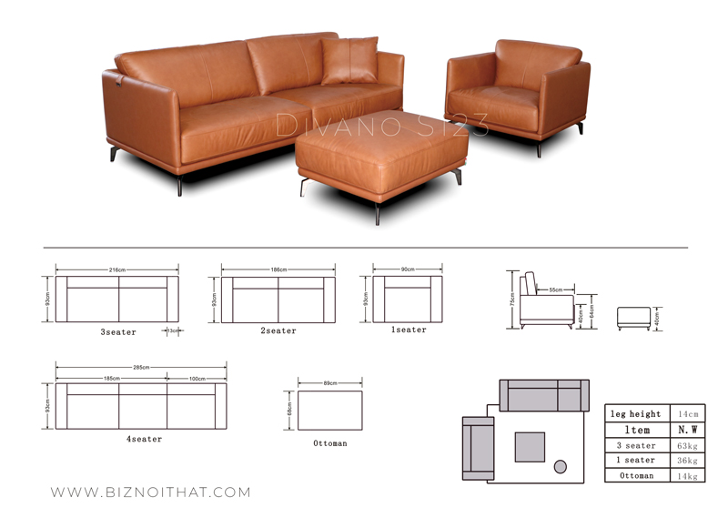 Văng Sofa da thật S-123 có thể kết hợp với Ghế Sofa đơn hoặc đôn Sofa taọ nên 1 phòng khách hiện đại sang trọng
