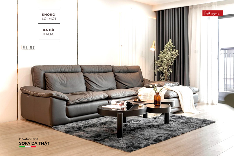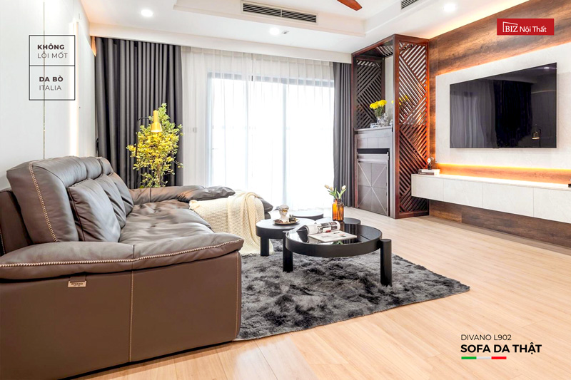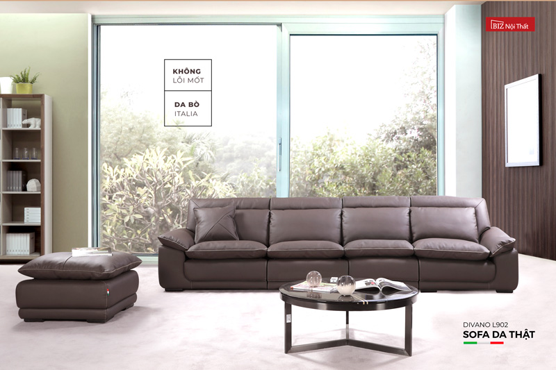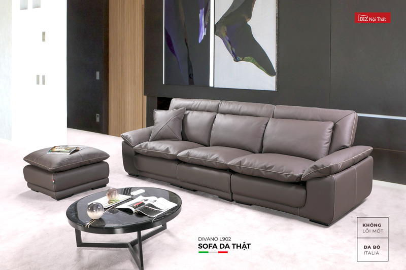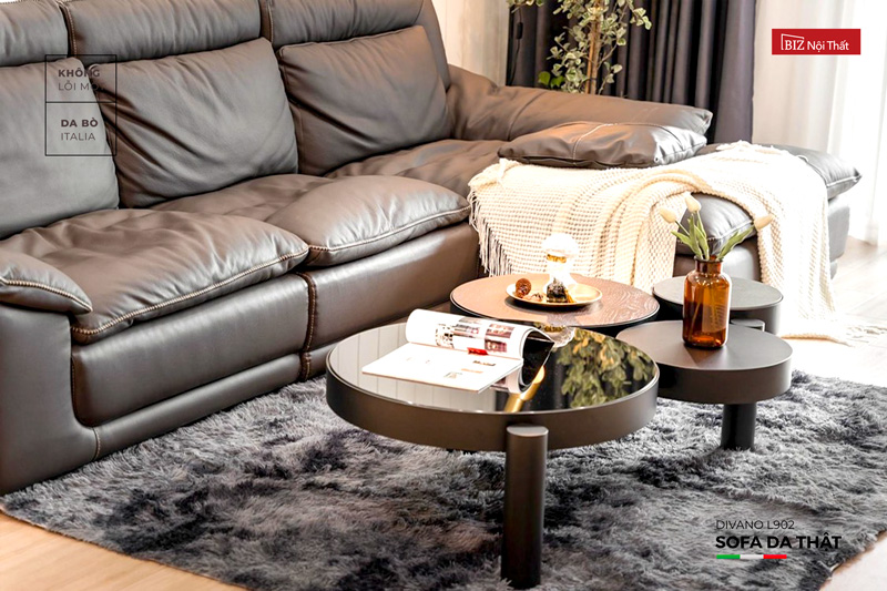 Văng Sofa da thật S902 kết hợp đôn taọ nên 1 phòng khách hiện đại sang trọng