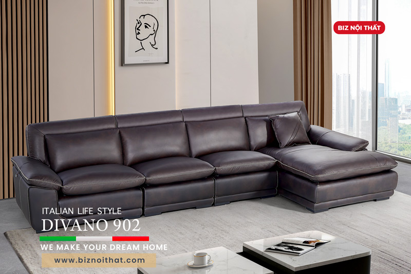 Bộ Sofa văng chất liệu da bò Ý nhập khẩu Divano S902 được thiết kế tiện dụng chia thành các module, thuận tiện cho việc sắp xếp không gian phù hợp trong mọi gia đình. Bên ngoài được bọc da bò cao cấp rất mịn, mát và không bám bụi, dễ dàng vệ sinh cùng đệm ngồi êm ái đảm bảo không bị xẹp lún, biến dạng trong thời gian dài.