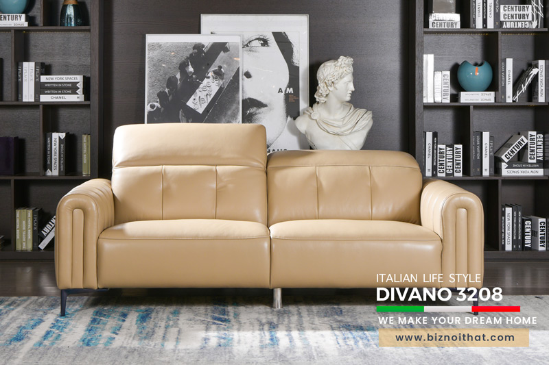 Showroom Gia Lâm: Gian hàng L03-09 - TẦNG 3 - TTTM Vincom Mega Mall Ocean Park Gia Lâm- KĐT OCEAN PARK 1 - Gia Lâm - Hà Nội. Tel: 0933896686. Open: 9:30 - 22hBộ Sofa văng da bò nhập khẩu Full 100% da bò Divano S3208 dài 2,05m màu kem sáng sử dụng chất liệu da bò thương hiệu GM đến từ Italia với chất lượng & độ bền cực cao. Bền Đẹp mãi theo thời gian. Da bò thật cực dày có tính năng ít thấm nước nên có chất lượng và khả năng chống bụi cao.