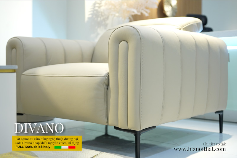 Nguồn gốc: DIVANO, sử dụng da thật từ hàng GM Italia - thương hiệu sản xuất Sofa phong cách hàng đầu Italia, được  thiết  kế, nhập  khẩu chính hãng  và  phân  phối  độc  quyền  bởi BIZ NỘI THẤT