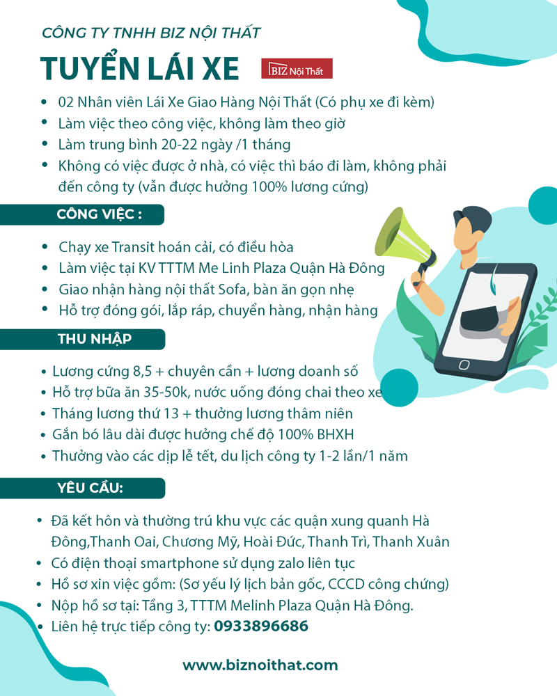 Công ty TNHH Biz Nội Thất tuyển lái xe giao hàng