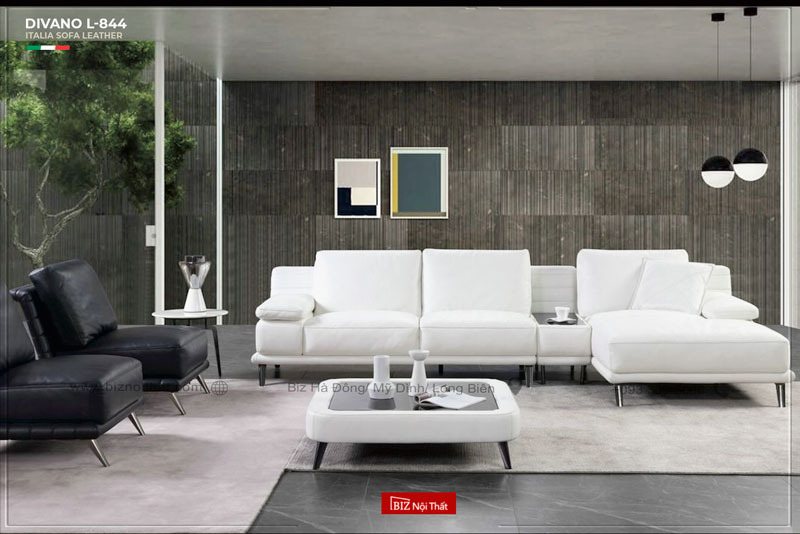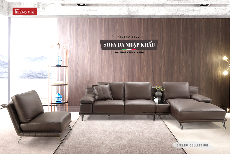Bộ Sofa chất liệu da bò Ý Divano L-844 sử dụng chất liệu da bò thương hiệu GM đến từ Italia với chất lượng & độ bền cực cao. Bền Đẹp mãi theo thời gian. Da bò thật cực dày có tính năng ít thấm nước nên có chất lượng và khả năng chống bụi cao.