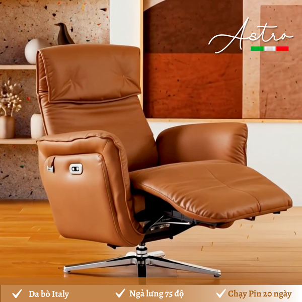 PHONG CÁCH BẮC ÂU Êm Ái Thư Thái: Ghế Sofa da thư giãn điều chỉnh điện Recliner thông minh 100% da bò Italia mang thương hiệu Astro được trang bị nhiều chức năng hiện đại với kết cấu được thiết kế không trọng lực tạo cảm giác nằm vô cùng thoải mái, chất liệu da thật cao cấp, thoáng khí,...Giúp người dùng có thể thoải mái nằm lướt web, đọc sách, xem TV,...vô cùng êm ái và dễ chịu. Đây cũng là món quà cho người thân cực kỳ ý nghĩa.