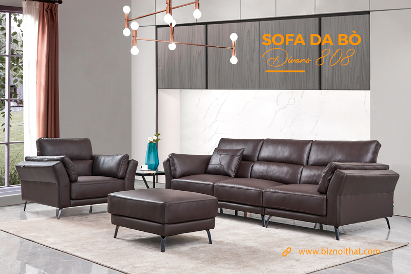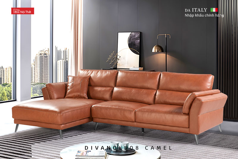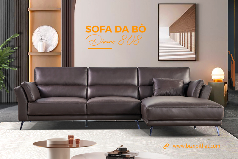 Ghế Sofa Góc chất liệu da bò Ý nhập khẩu Divano L-808 màu Nâu Dark Brown sử dụng chất liệu da bò thương hiệu GM đến từ Italia với chất lượng & độ bền cực cao. Bền Đẹp mãi theo thời gian. Da bò thật cực dày có tính năng ít thấm nước nên có chất lượng và khả năng chống bụi cao.