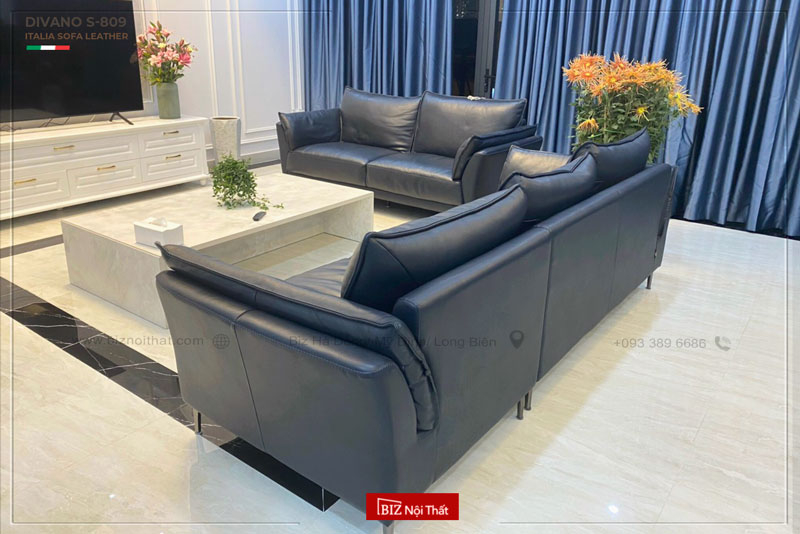 Sofa da thật Italia nhập khẩu chính hãng Divano S-809 sử dụng chất liệu da bò thương hiệu GM đến từ Italia với chất lượng & độ bền cực cao. Bền Đẹp mãi theo thời gian. Da bò thật cực dày có tính năng ít thấm nước nên có chất lượng và khả năng chống bụi cao.