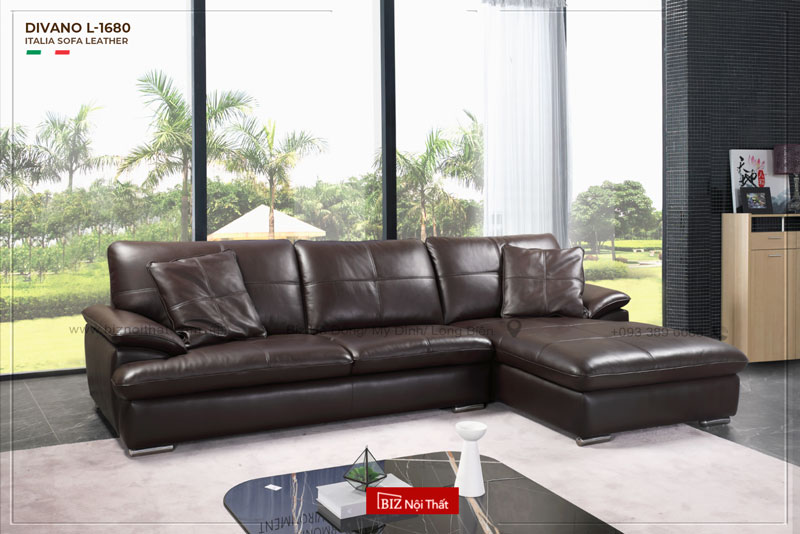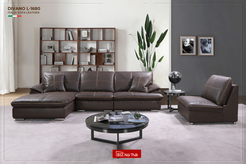 Showroom Gia Lâm: Gian hàng L03-09 - TẦNG 3 - TTTM Vincom Mega Mall Ocean Park Gia Lâm- KĐT OCEAN PARK 1 - Gia Lâm - Hà Nội. Tel: 0933896686. Open: 9:30 - 22hBộ Sofa chất liệu da bò Ý Divano L-1680 sử dụng chất liệu da bò thương hiệu GM đến từ Italia với chất lượng & độ bền cực cao. Bền Đẹp mãi theo thời gian. Da bò thật cực dày có tính năng ít thấm nước nên có chất lượng và khả năng chống bụi cao.