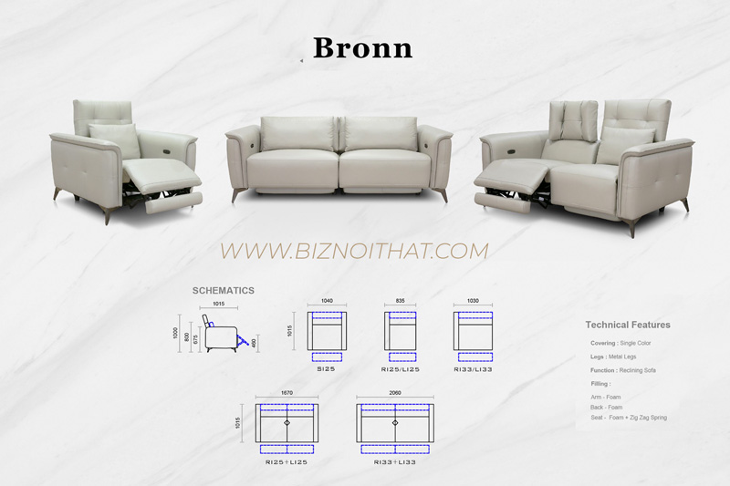 Sofa Thông Minh BRONN 100% da thật - Ghế Sofa chỉnh điện Nhập Khẩu nguyên chiếc từ Malaysia với phong cách hiện đại, sang trọng, kết cấu vững chãi mang đến sự tiện nghi, êm ái cho phòng khách của gia đình và giúp cho không gian trò chuyện thêm thoải mái, thân thiện.